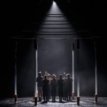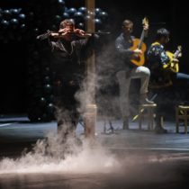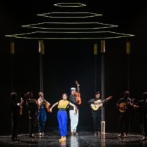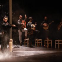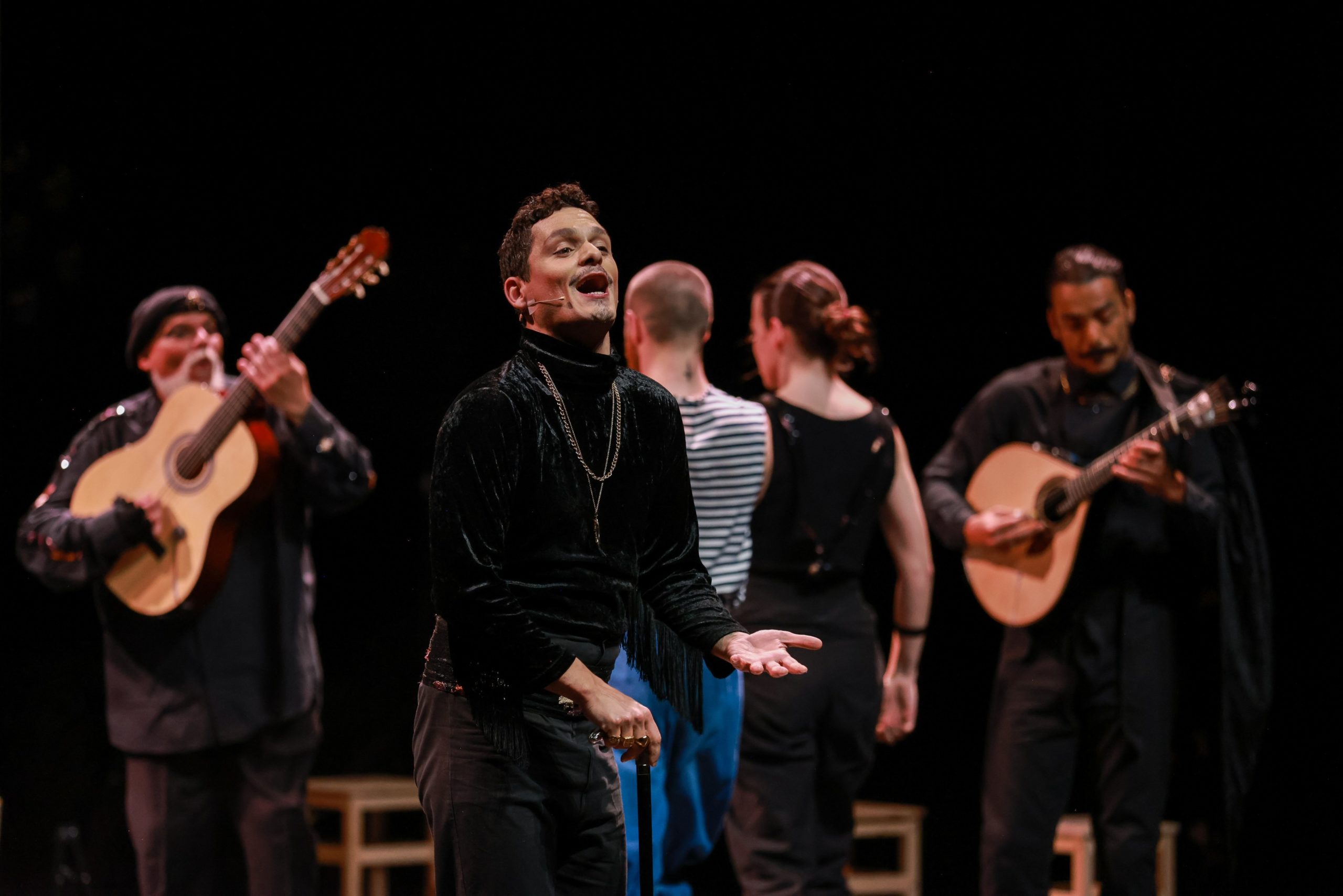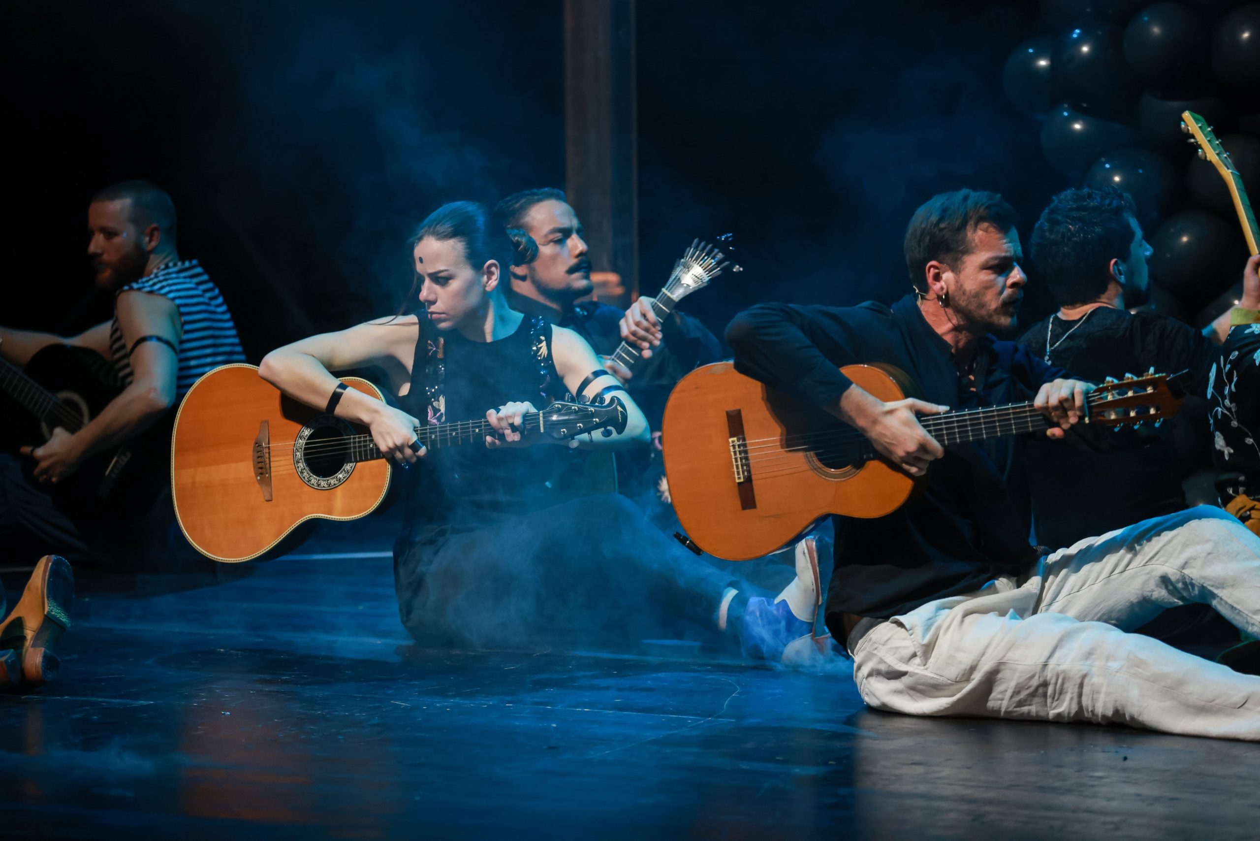 Cette performance hybride, entre danse et concert de musique est conçue pour quatre musiciens, un chanteur de fado et quatre danseurs. Le geste résonne avec la qualité d’un instrument de percussion et dialogue avec la voix et les guitares. Les artistes ne s’interdisent ni la parodie ni l’impudeur, déconstruisant l’image du fadista mâle et libérant les corps sublimés par la voix déchirante de Jonas.