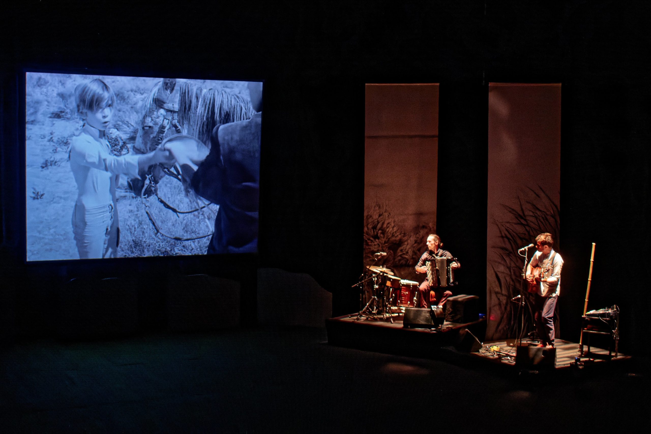 Camille Saglio et Matthieu Dufrêne jouent en live une bande-son qu’ils ont créée pour l’occasion. Ils viennent ainsi sublimer la fougueuse cavalcade des protagonistes en immergeant le spectateur dans une nature immense et sauvage.
