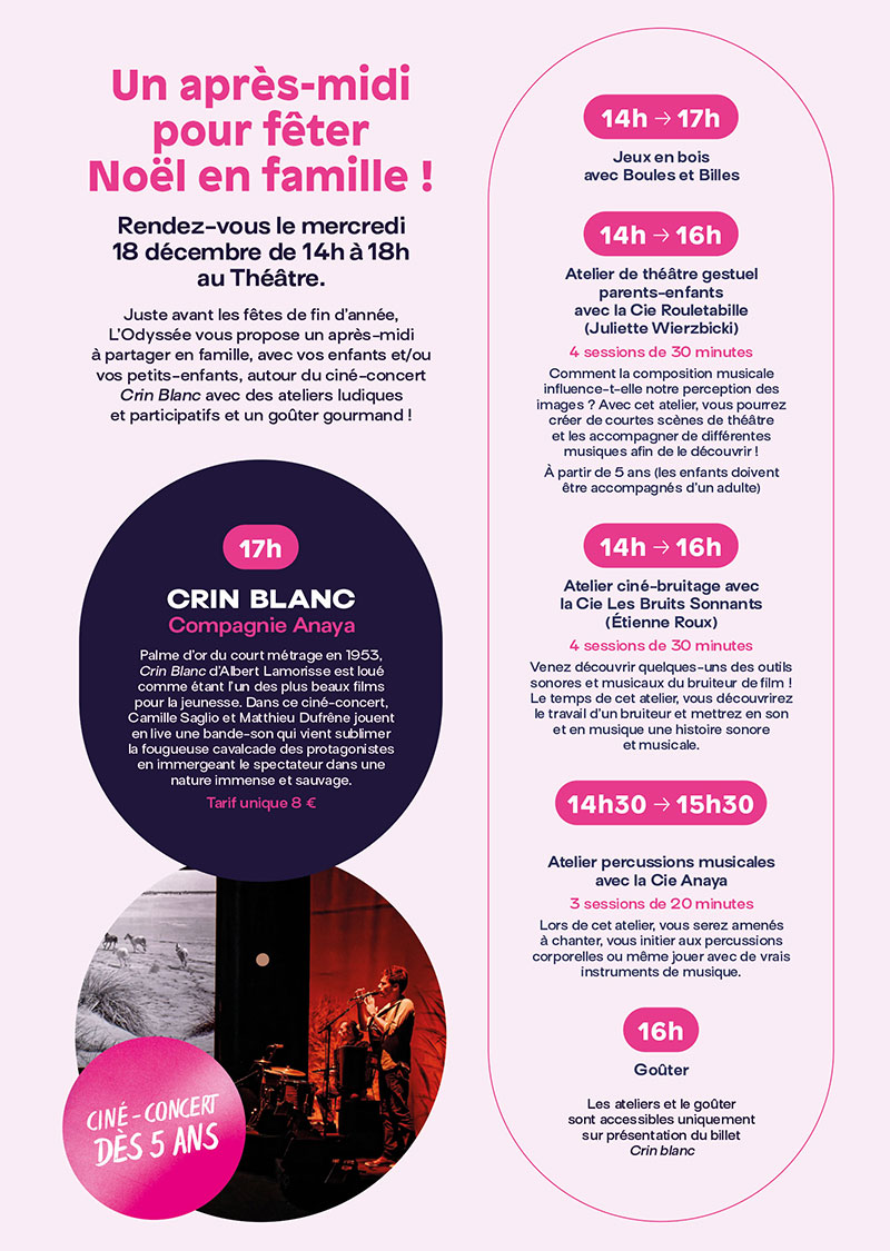 A noter : les ateliers et le goûter sont accessibles uniquement sur présentation du billet Crin Blanc