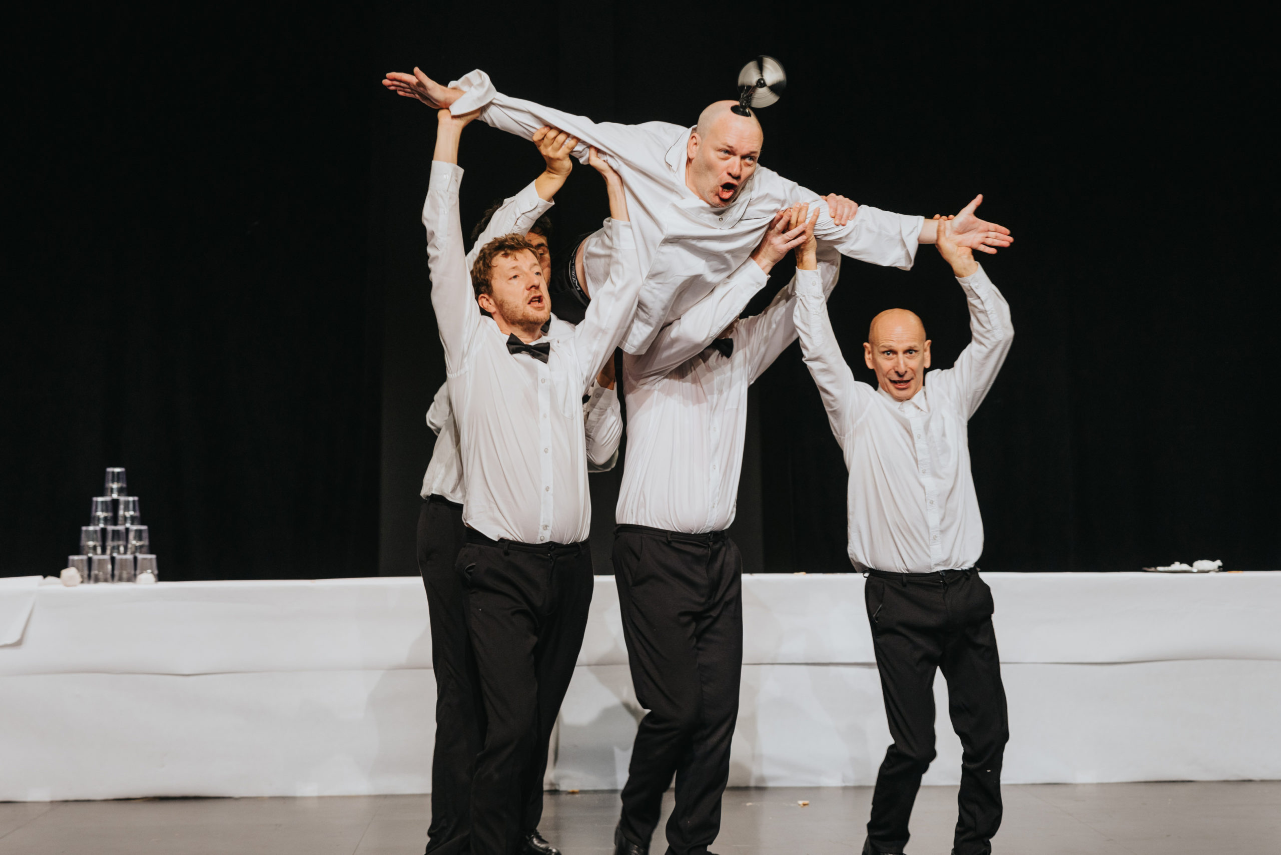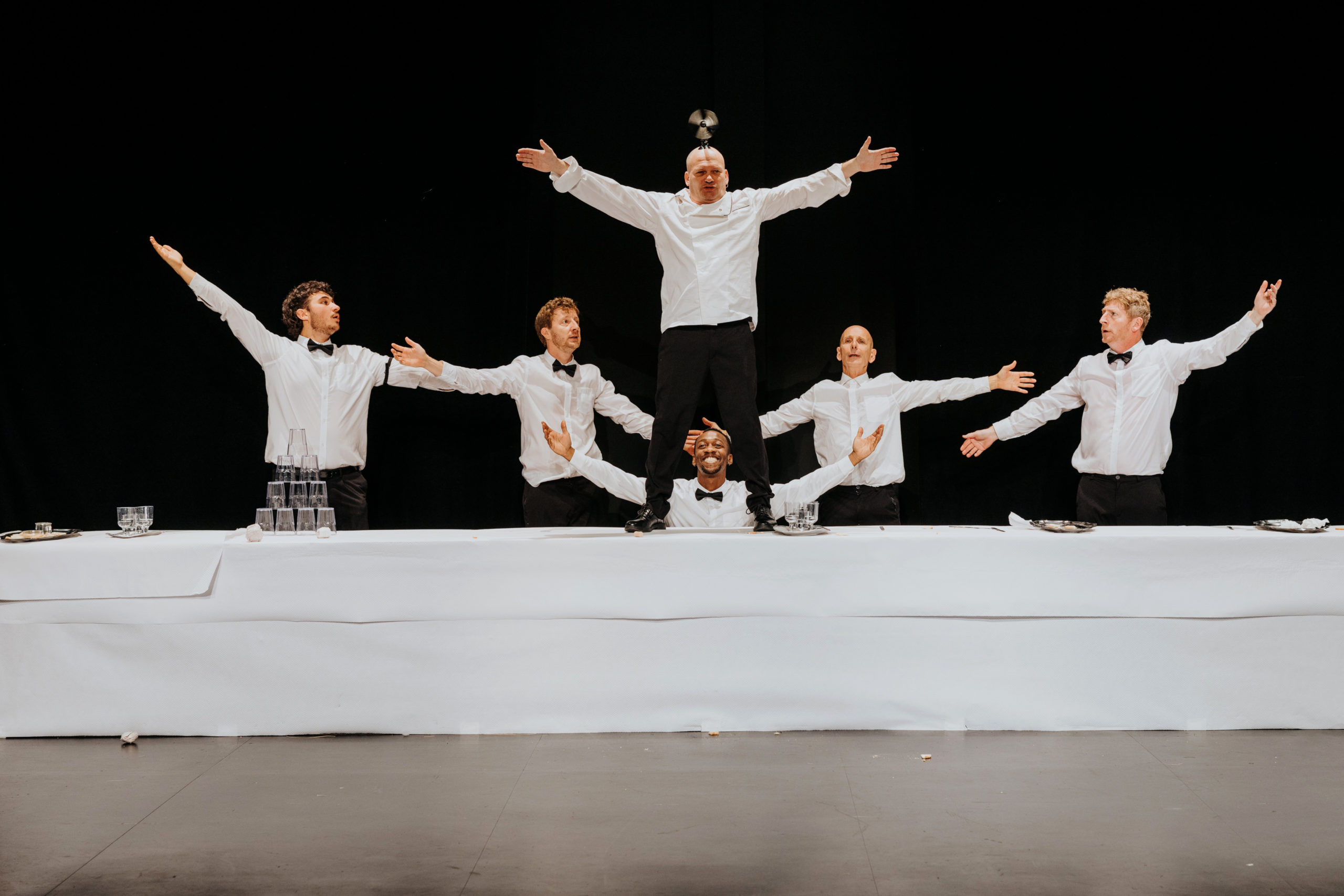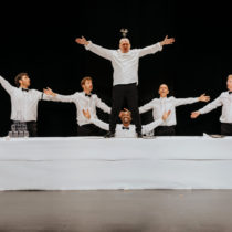Ce spectacle burlesque tout public et universel est à déguster en famille ! Et finalement, après une heure de spectacle, le buffet sera bel et bien dressé et le public pourra venir déguster un kir en grignotant quelques toasts…