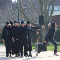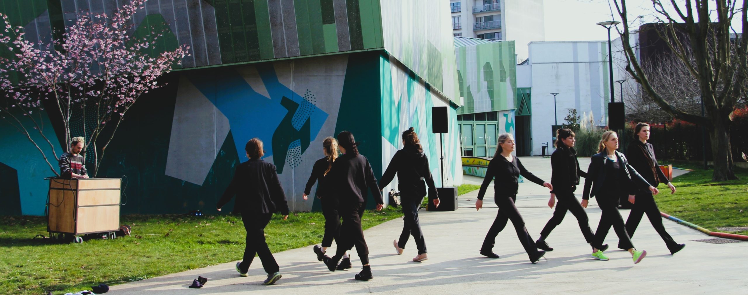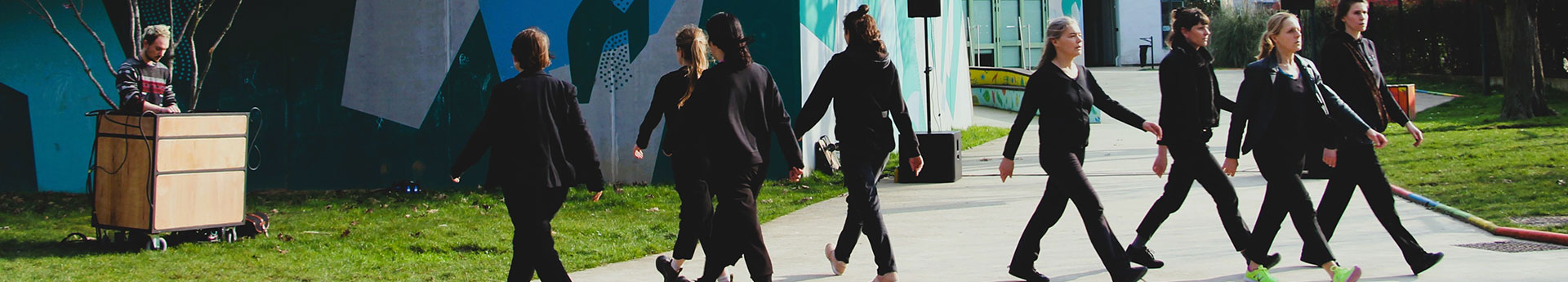Parce que les femmes doivent défendre leur liberté d’agir jusque dans l’espace public, la compagnie inEX- s’empare de la rue, avec Le Bal des Filles, un chœur de marche pour huit femmes, soutenu par une puissante musique électro mixée en direct.