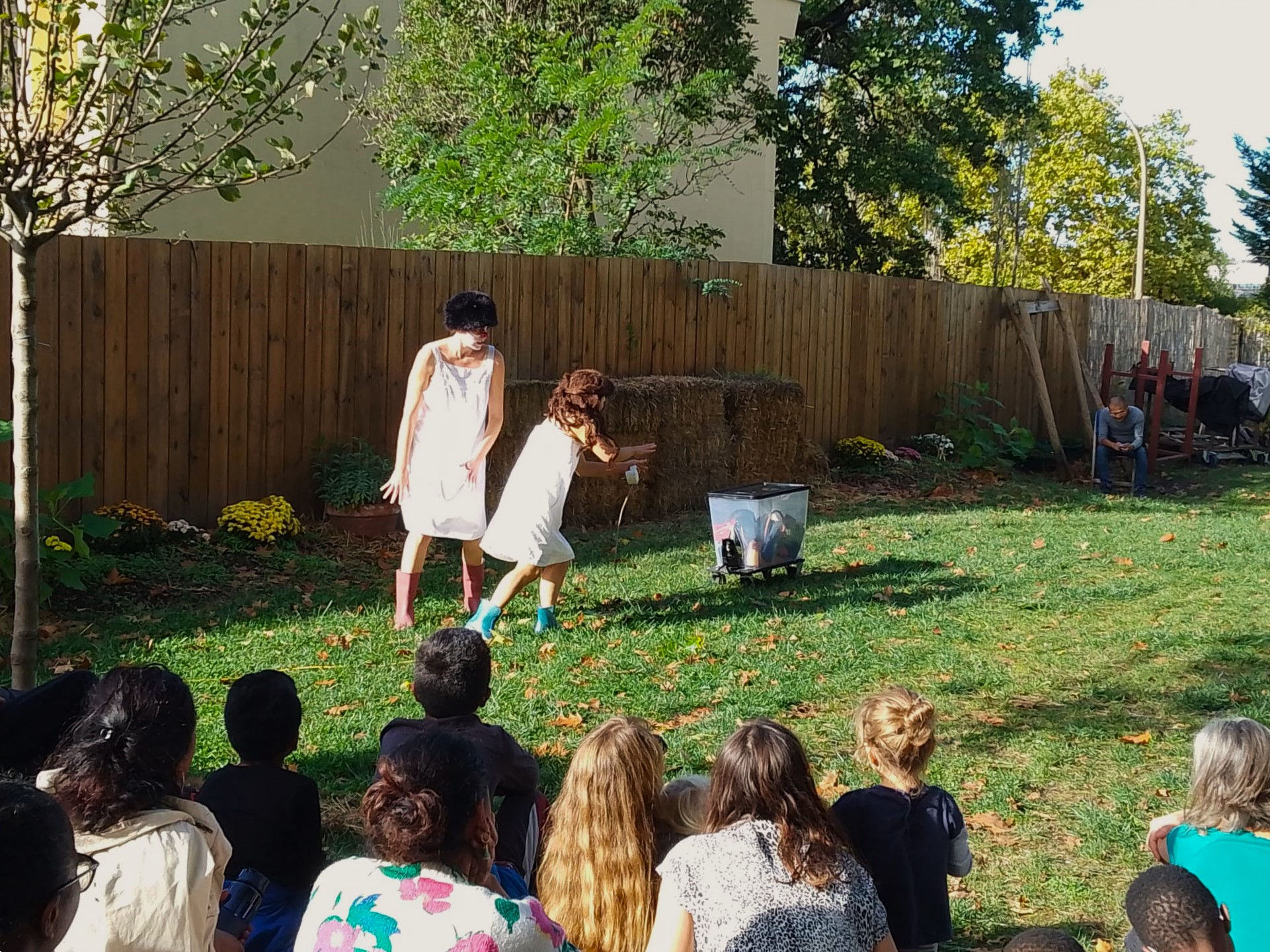 Deux sœurs font avec ce qu’il leur reste. Une boîte de rangement en plastique, un bout de cordon électrique en guise de laisse et leur relation. Elles vivent de leurs larcins, possèdent peu mais meublent le vide de leur imaginaire. Et si ces deux clowns ont toujours compté l’une sur l’autre et l’une pour l’autre, aucune ne dédaignera faire une bonne crasse à l’autre… ou au public !