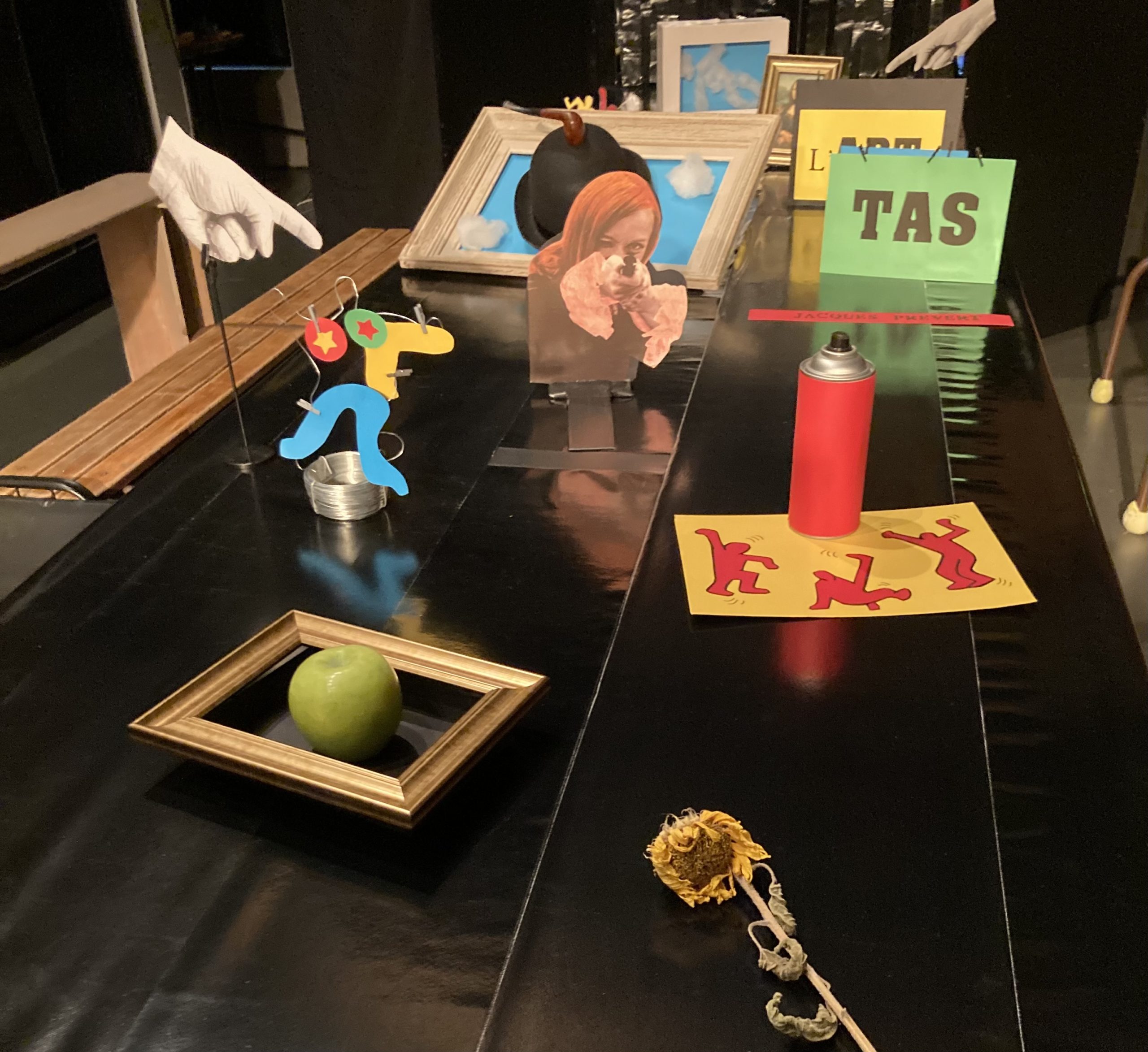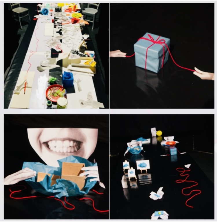La Compagnie Areski vous convie à un grand banquet artistique où l’on célèbre « l’art avec un grand tas » comme disait Jacques Prévert. L’action prend place sur une longue table sur laquelle vont se déplacer des objets et des images détournées à la façon d’un défilé poétique et absurde. Placés sur des tapis roulants, ces éléments vont tisser d’infimes variations visuelles et sonores autour du geste créatif, au grand plaisir des petits et des grands assis des deux côtés de la table.