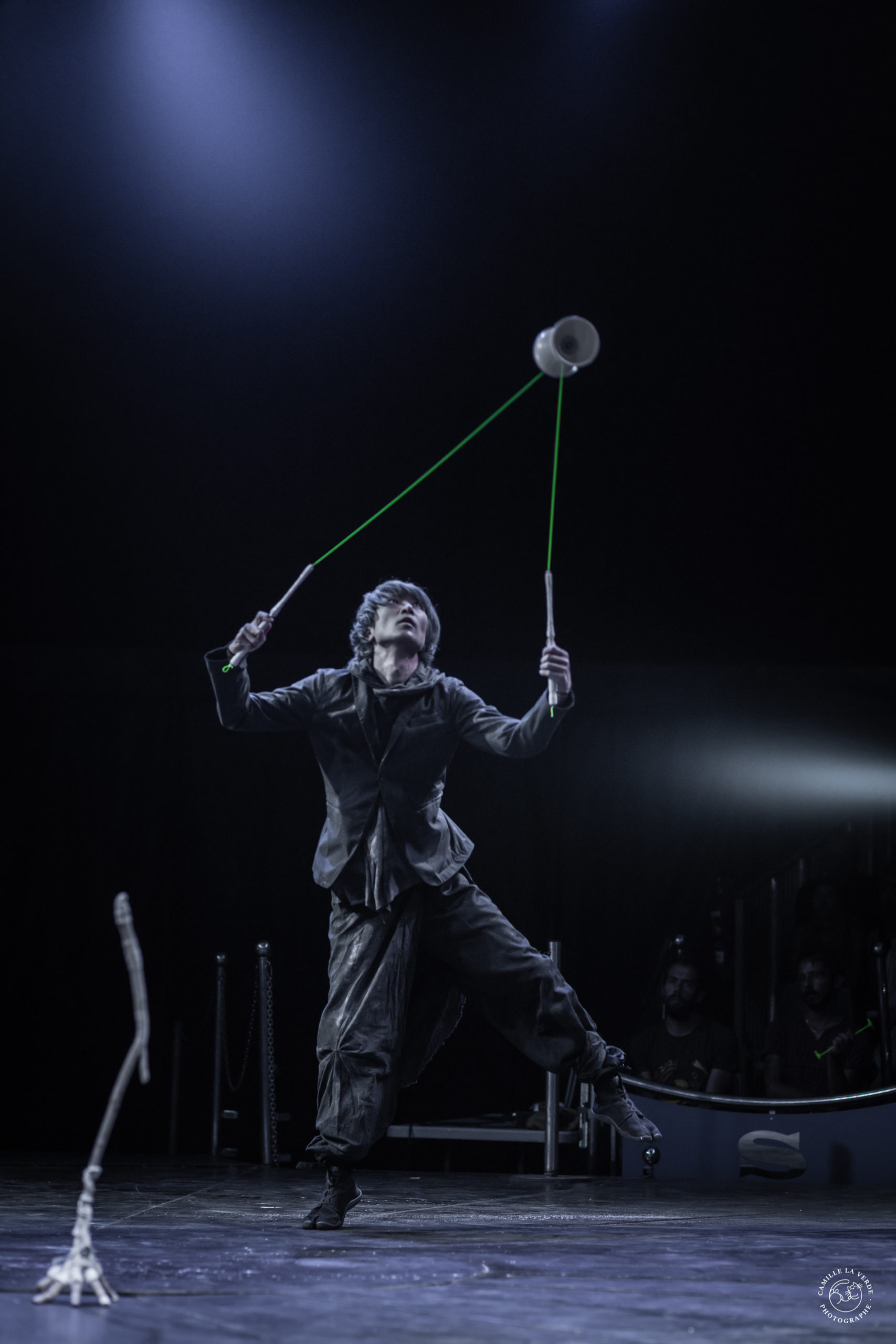 Cet artiste japonais allie sa grande habileté technique et sa créativité avec le diabolo et plusieurs mouvements de danse au service d’une chorégraphie passionnée. Il touche les contours des objets et des gens et explore leur paysage intérieur… Il s’imprègne de tout ce qui l’entoure rendant chacune de ses performances uniques.